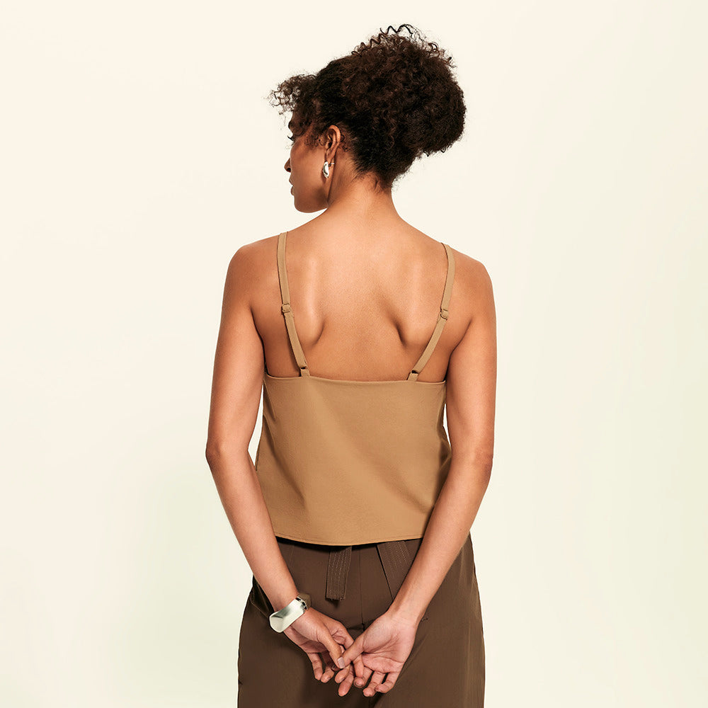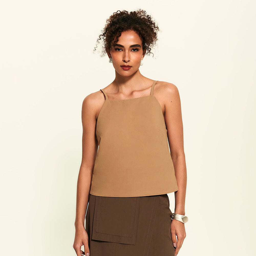Prazer, a evolução das regatas arrumadas. Essa blusa tem decote reto fechado, forro interno e alças finas com reguladores no mesmo tom da peça, tudo pensado pra trazer um visual clean, chic e minimalista. Feita com o tecido tecnológico FutureForm®, é leve e acompanha seus movimentos sem limitar, mantendo o caimento e conforto impecáveis. Faz par perfeito com a Saia Midi Kyoto e Calça FutureForm, combinações que entregam toque sofisticado e zero esforço para usar.