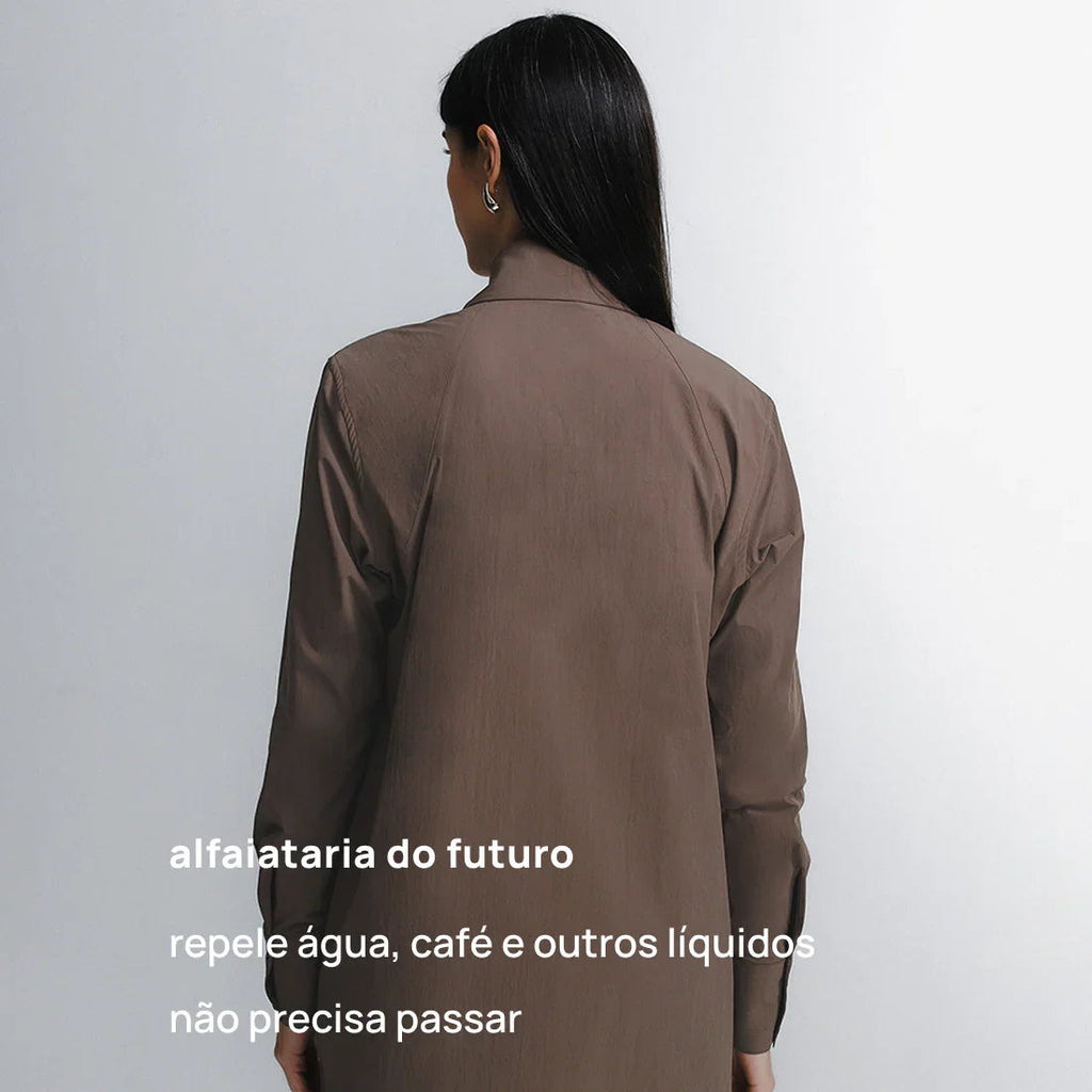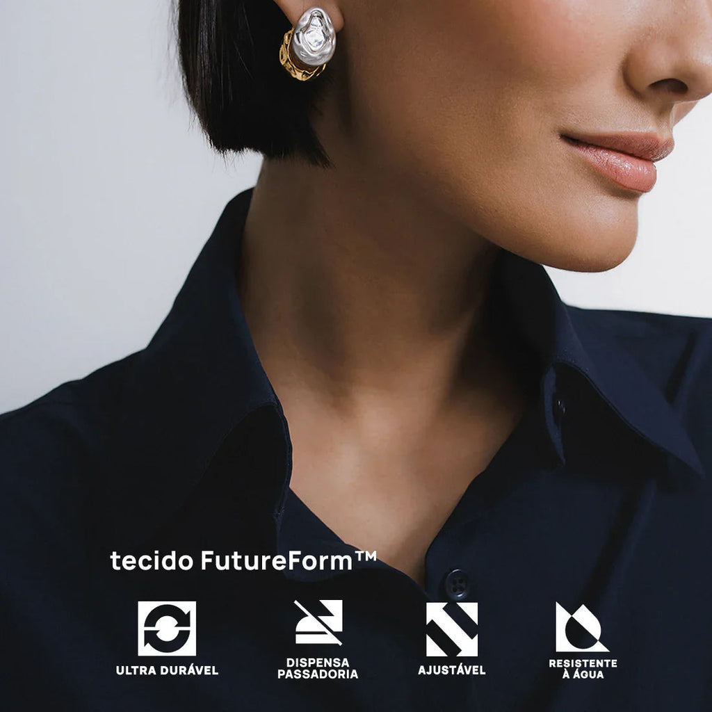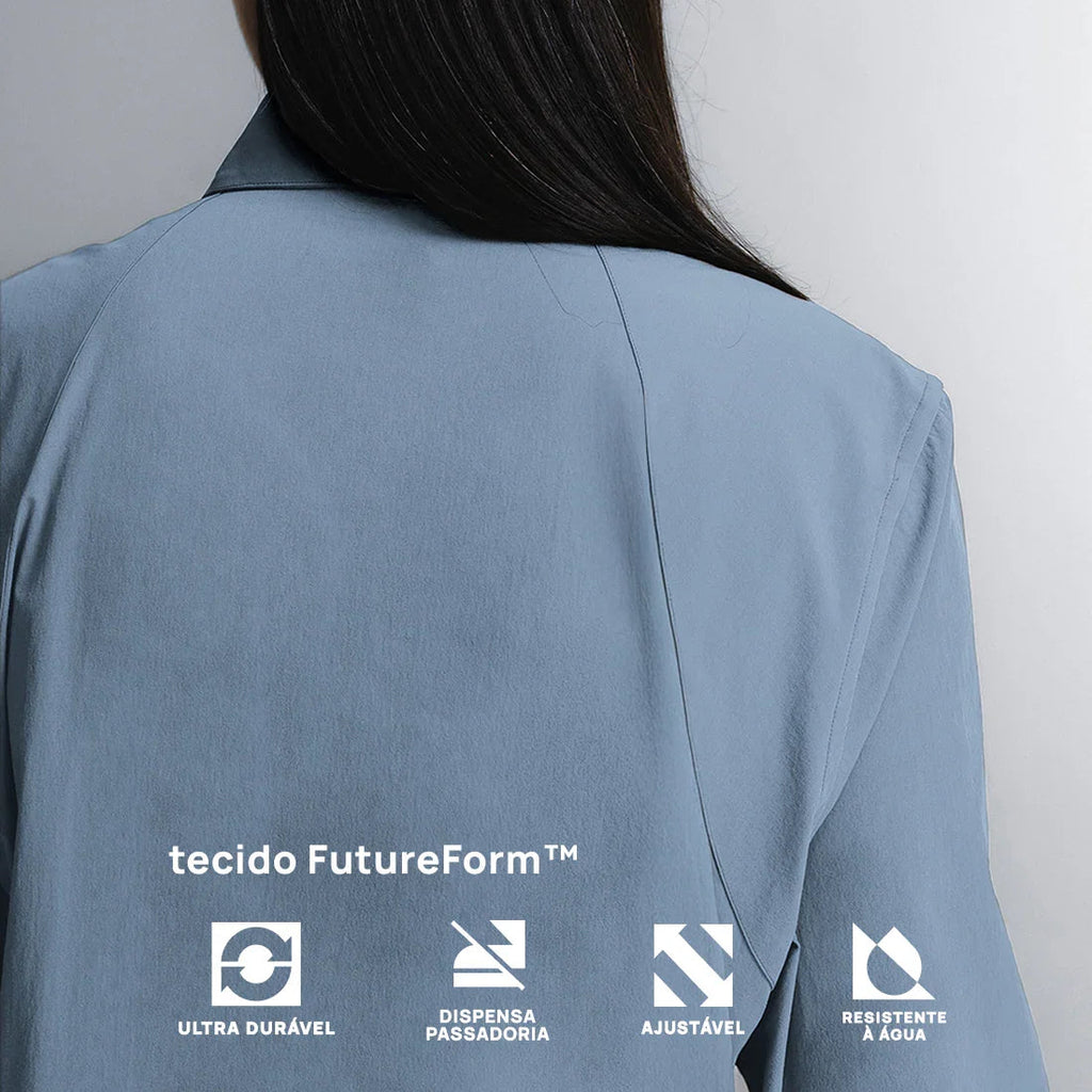Camisa social tecnológica com acabamento resistente à água, projetada para unir sofisticação e praticidade no ritmo do workwear contemporâneo. A modelagem alongada e oversized garante conforto e um visual clean, perfeito tanto para ambientes formais quanto para combinações athleisure mais despojadas. Confeccionada em tecido FUTUREFORM®, oferece respirabilidade, elasticidade e secagem rápida, mantendo a peça sempre alinhada em qualquer ocasião.