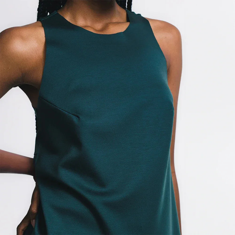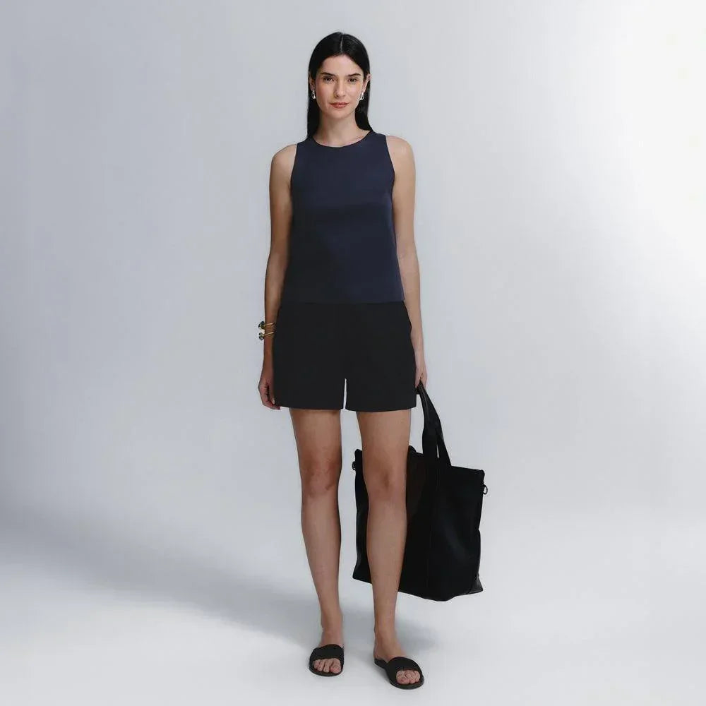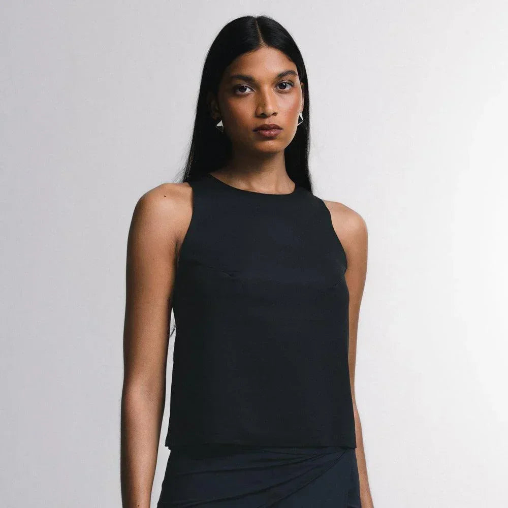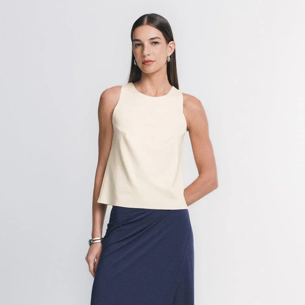 A Blusa Feminina Minimal Top é sem mangas e com decote arredondado mais próximo ao pescoço. Seu shape geométrico possui modelagem boxy, feito com tecido ULTRABOLD™️, tem comprimento entre camiseta regular e cropped.