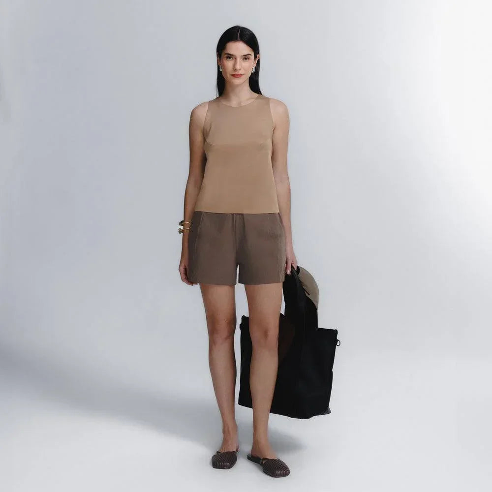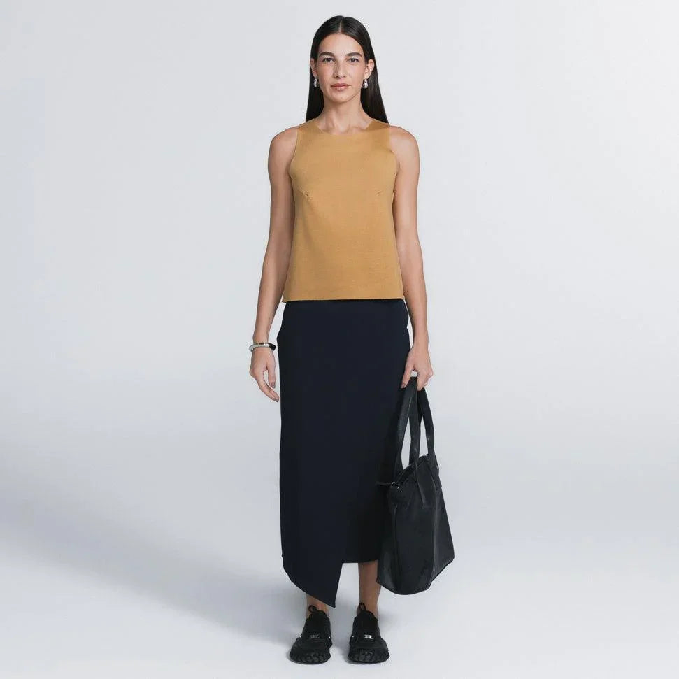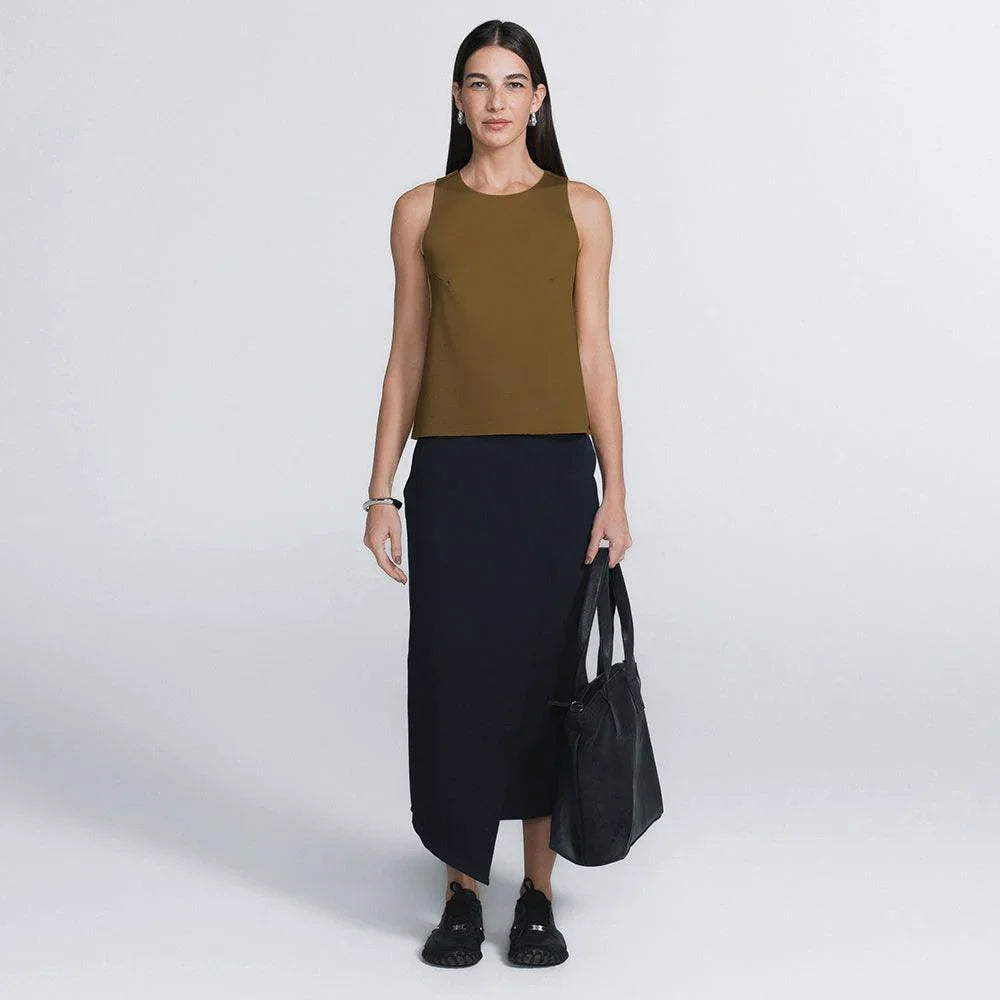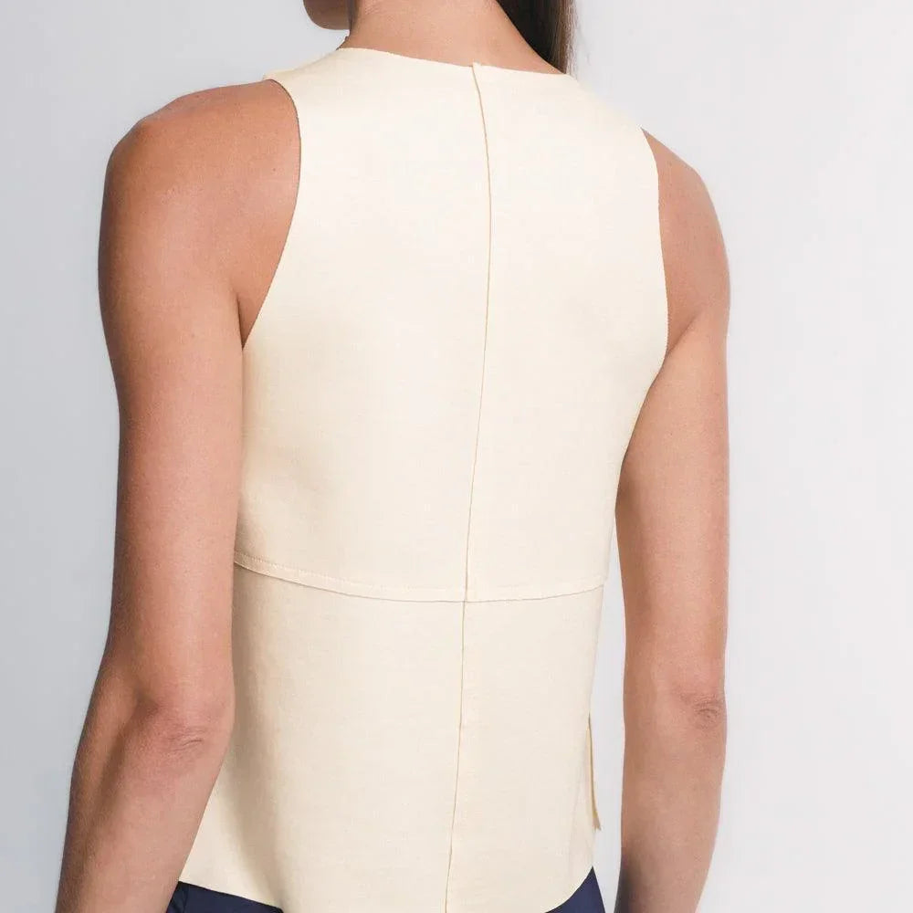 A Blusa Feminina Minimal Top é sem mangas e com decote arredondado mais próximo ao pescoço. Seu shape geométrico possui modelagem boxy, feito com tecido ULTRABOLD™️, tem comprimento entre camiseta regular e cropped.