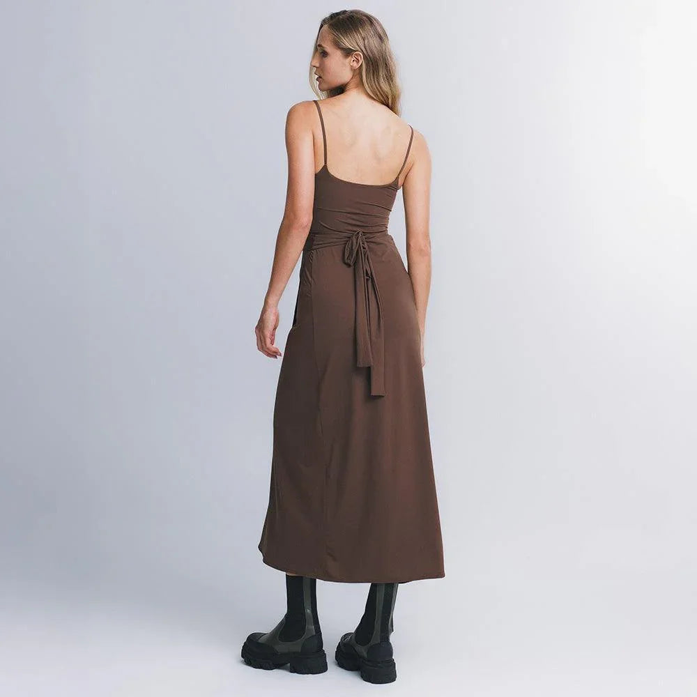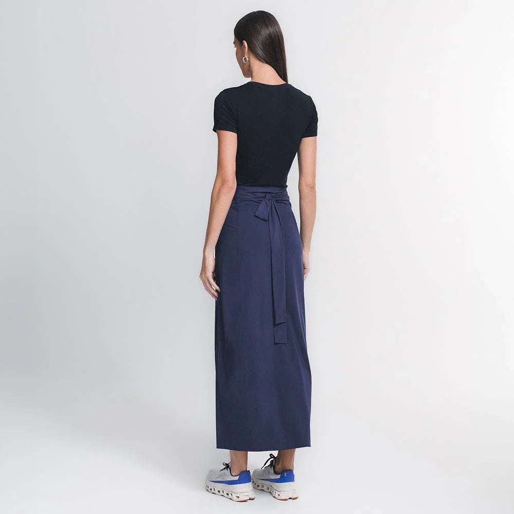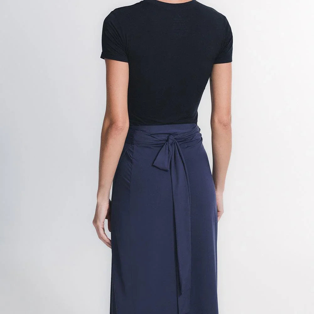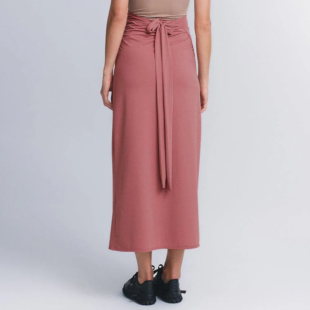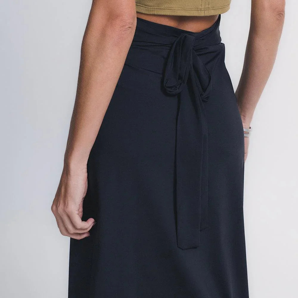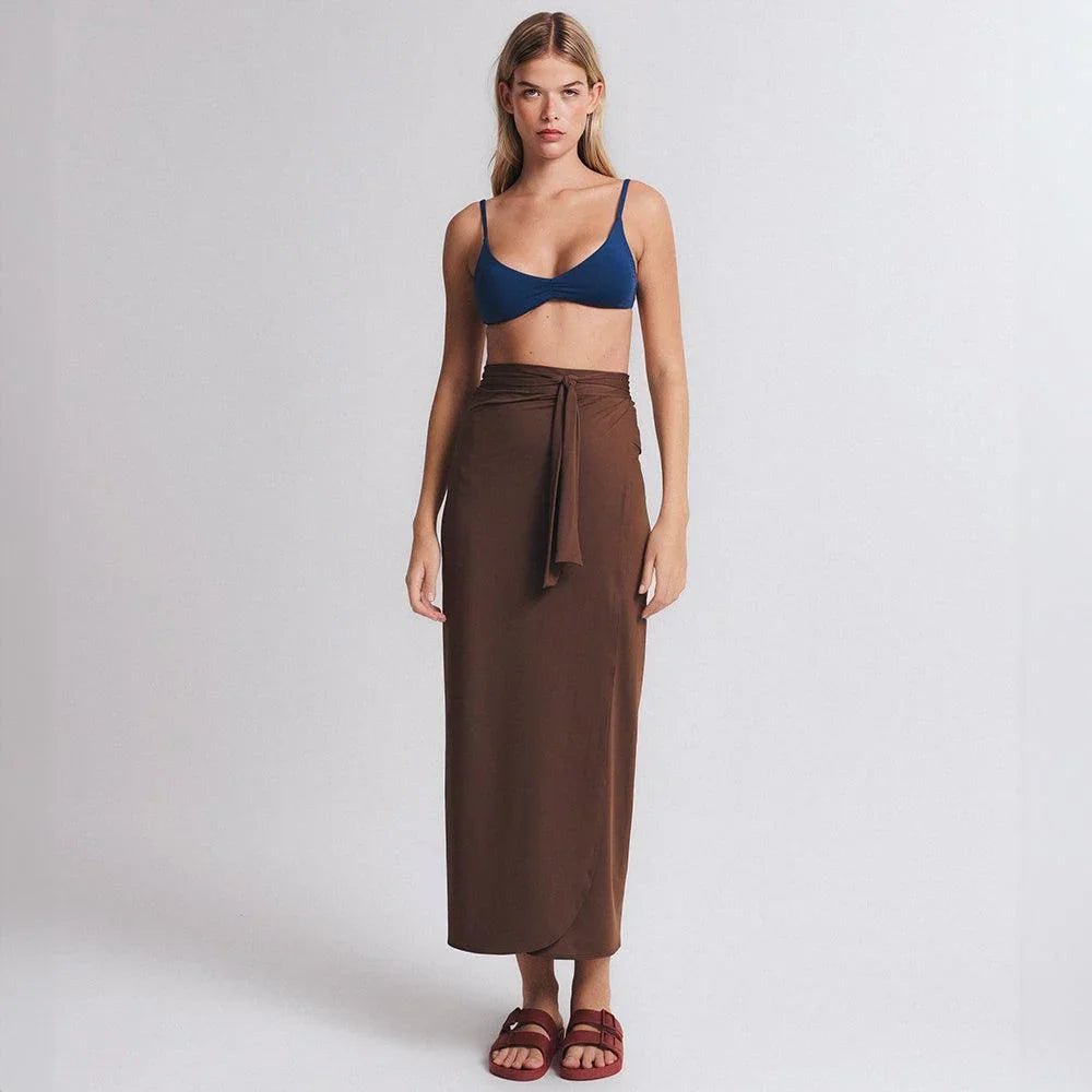 Confortável e versátil para usar no dia a dia ou como saída de praia. Saia envelope comprimento midi, cintura alta com transpasses e tiras para amarrar. Também pode ser usada como túnica, blusa ou vestido - várias possibilidades. Feita com fios de poliamida biodegradável e elastano.