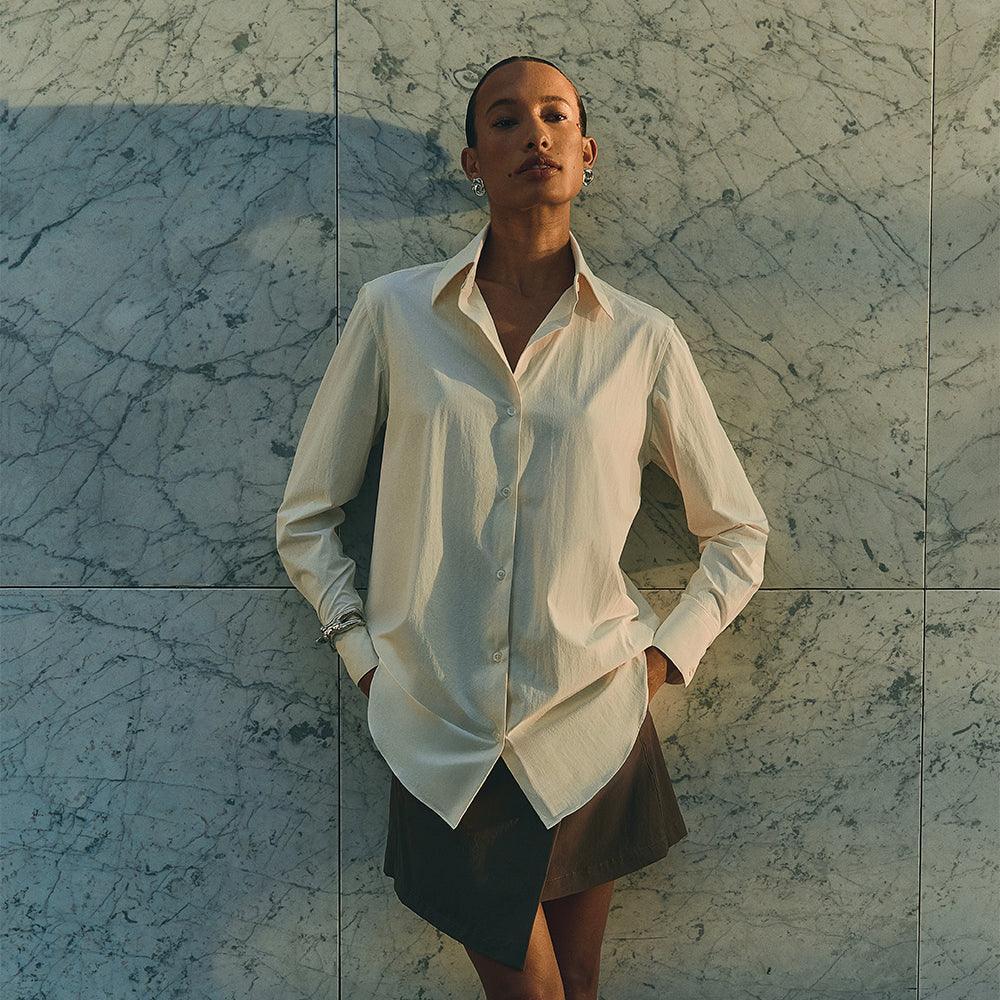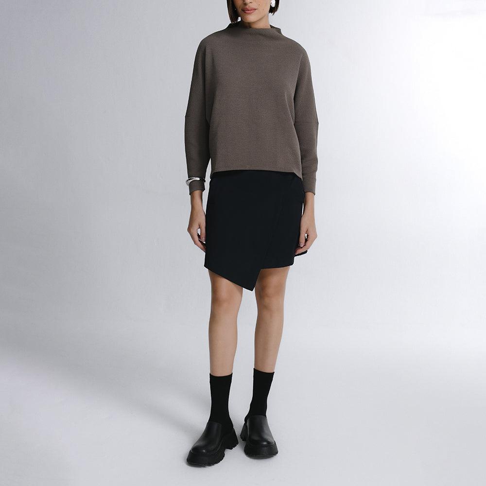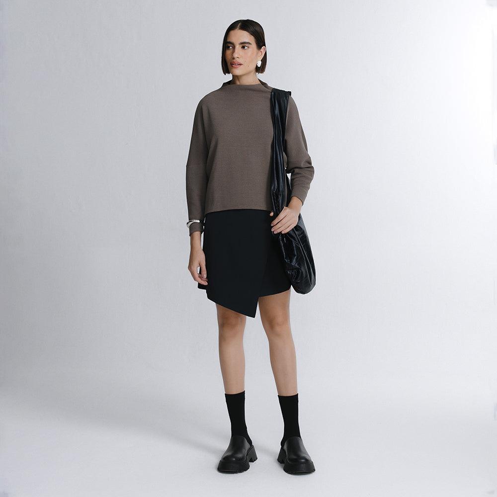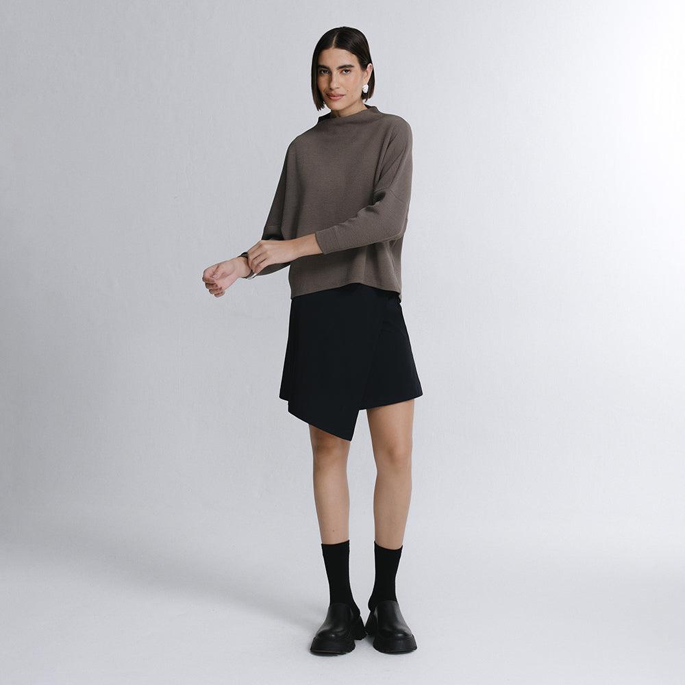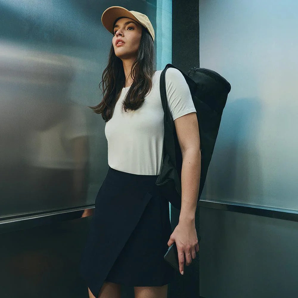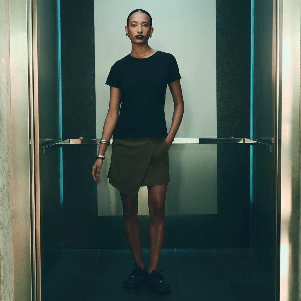 A Saia Mini Alfaiataria Tech Kyoto é uma das 2 novas adições à família Kyoto - alfaiataria tecnológica que une o minimalismo japonês ao design contemporâneo e recortes geométricos, para criar looks criativos e versáteis. Tem dois bolsos laterais, cintura alta, frente transpassada com fechamento invisível na diagonal do cós, e todas as funcionalidades do tecido tecnológico FutureForm®: