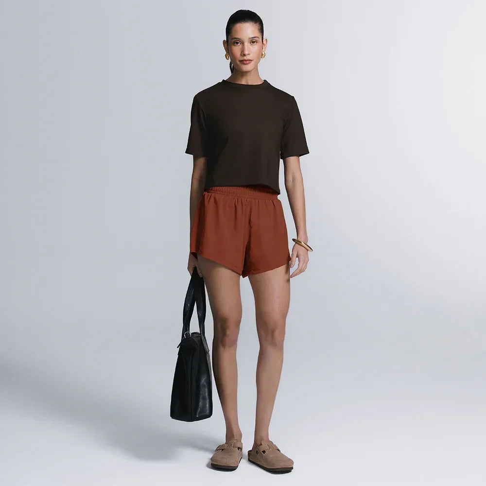 Shorts fitness feminino minimalista, cintura média com detalhe franzido para maior sustentação. Comprimento curto e shorts interno integrado para treinos ultra confortáveis e seguros. Versátil para usar onde quiser. Feito com tecido tecnológico de alta performance: