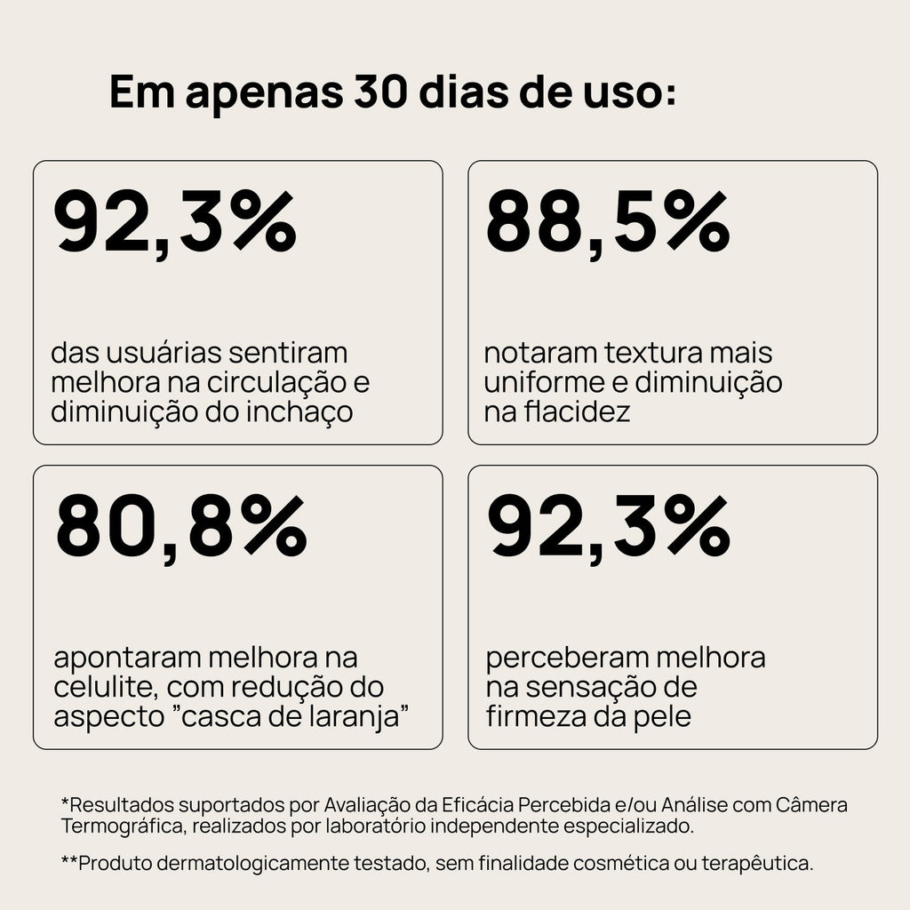 - Ativos de café, que estimulam a camada mais superficial da pele