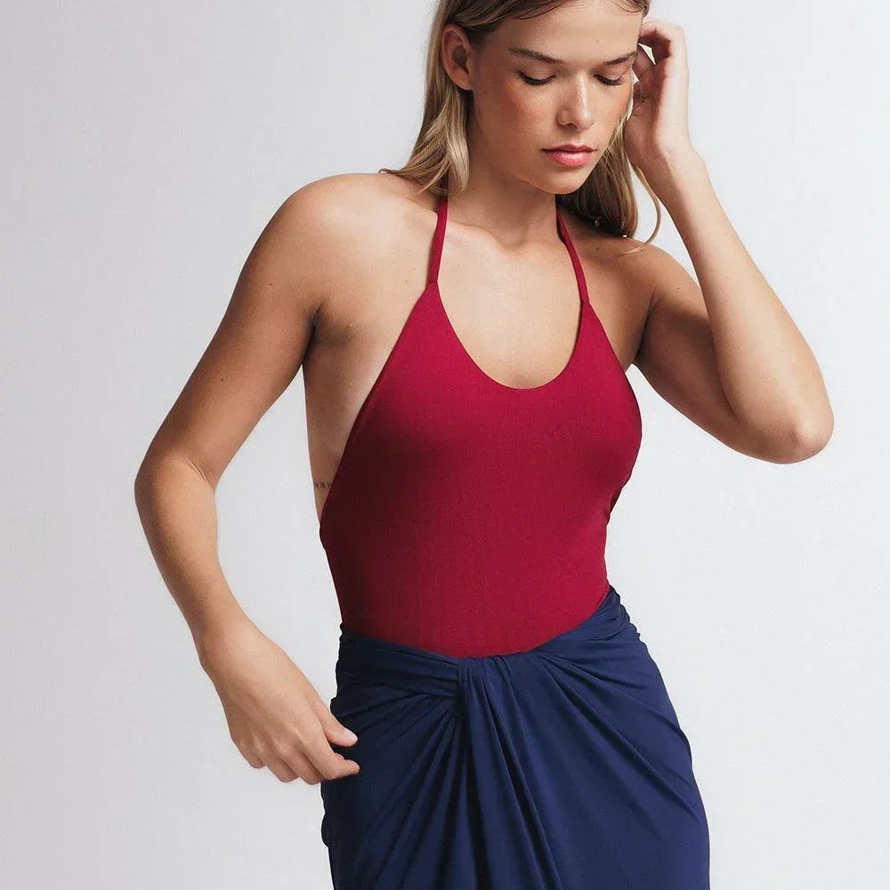 Versátil, pode ser usado como traje de banho ou body. Em cores solares que valorizam diferentes tons de pele, esse maiô de decote em formato U nas costas, tecido ZEAMADE ™️ duplo com forro, busto com bojo removível e alças criativas para amarrar de diferentes formas: cruzadas em X, como frente única ou do jeito tradicional.