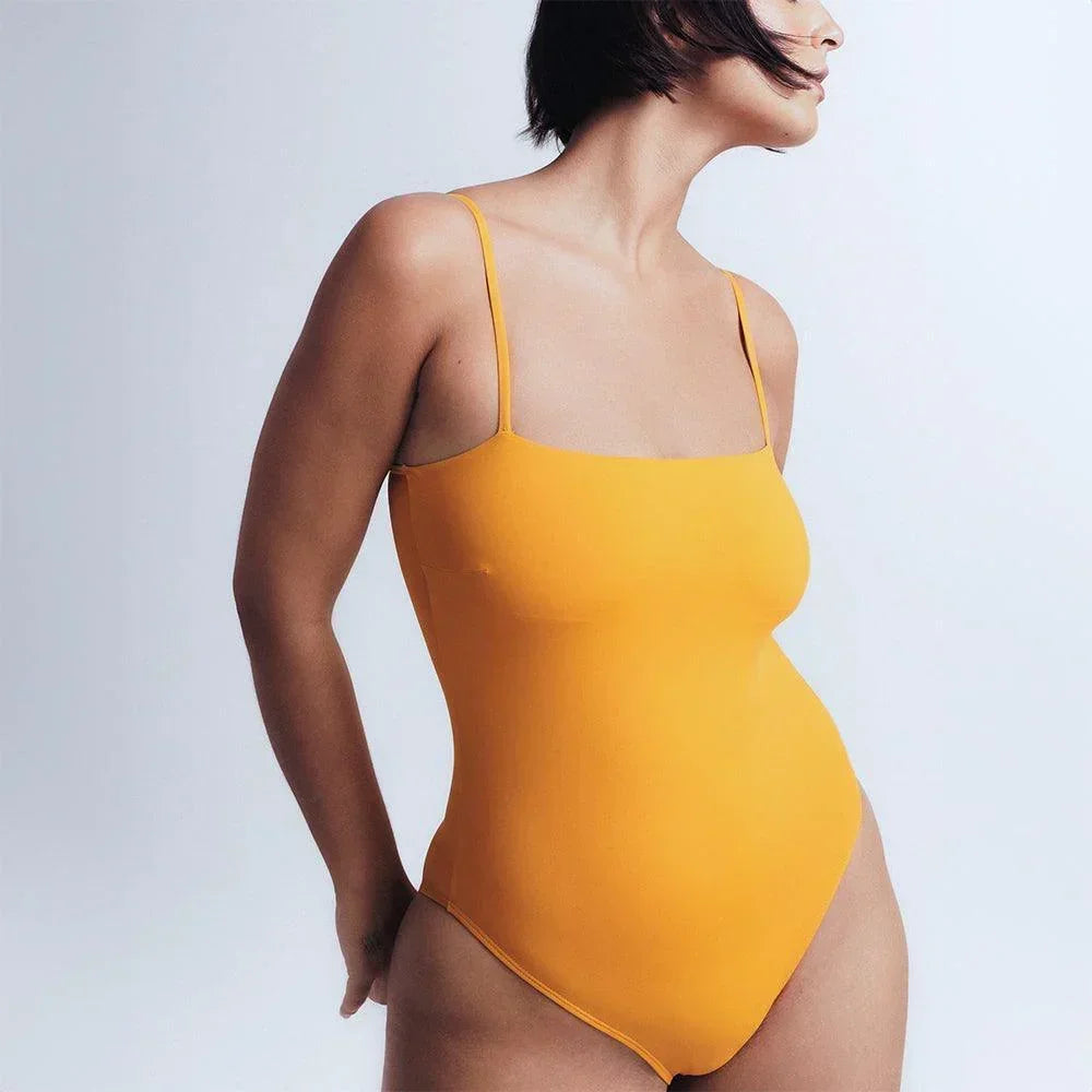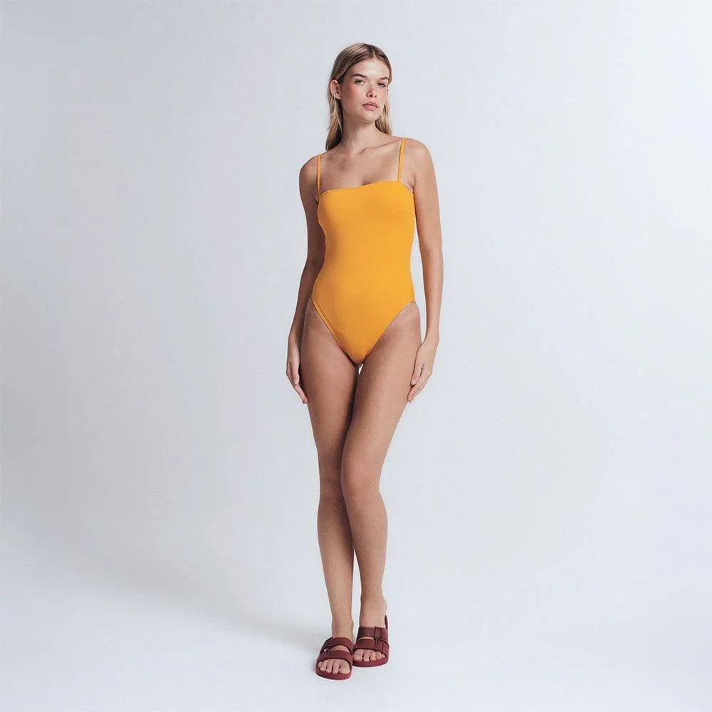 Em cores que transmitem a elegância solar e dialogam com diferentes tons de pele, esse maiô de decote reto pode ser usado como traje de banho ou body. Tem alças finas, abertura mediana nas pernas, busto com bojo removível e tecido ZEAMADE ™️ duplo com forro, que não deixa transparecer.