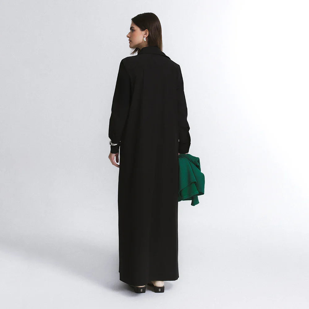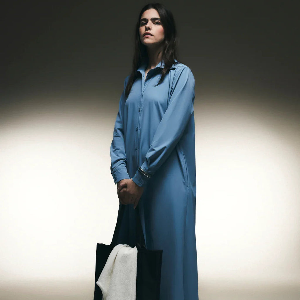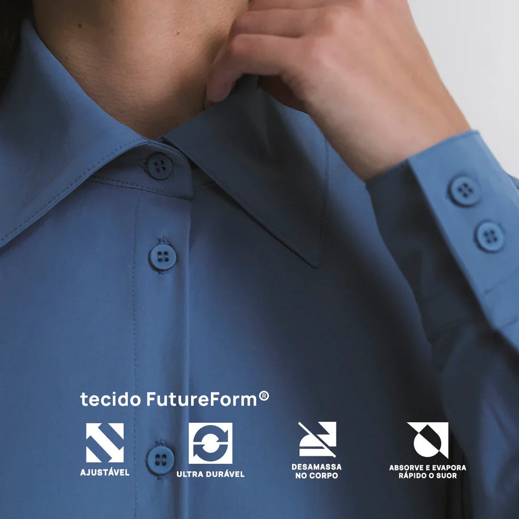 É aquele item que faz tudo e faz com estilo. Além de tecnológico, esse vestido chemise de manga longa é super versátil: tem gola ampla e estruturada, shape levemente evasê, bolsos laterais embutidos e fenda lateral que auxilia na mobilidade. E, feita com o tecido FutureForm, é leve, respirável e não precisa passar.